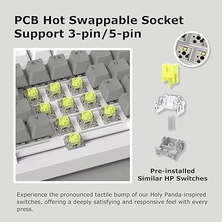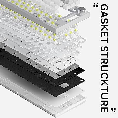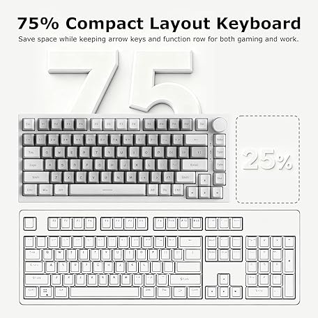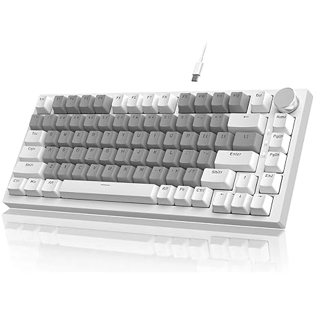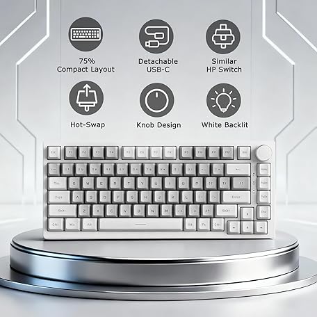 Thông tin sản phẩm AK820 Wired 75% Mechanical Keyboard, Hot-Swappable Gasket-Mounted Gaming Keyboard with Similar HP Switches, 81 PBT Keycaps White-Grey Layout, Multimedia Keys Knob, White Backlit