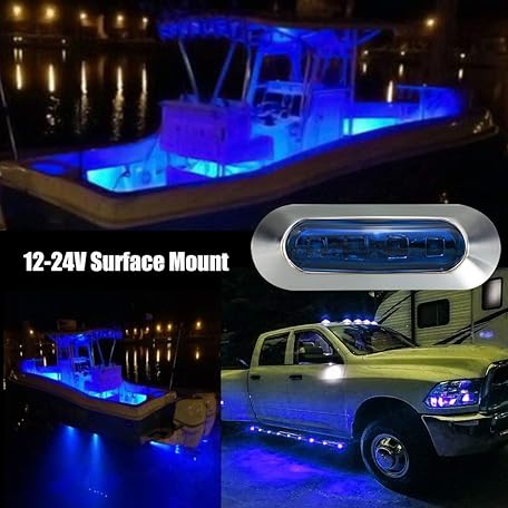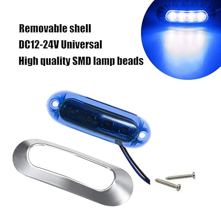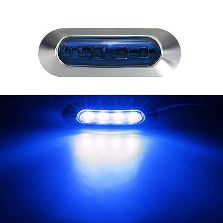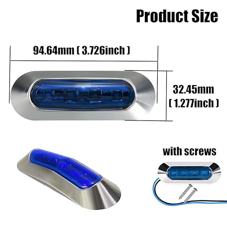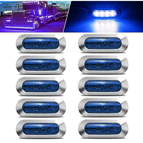 ALFU 10PCS Blue DC12V-24V 4 LED Side Marker Indicator Lights Lamp Front Rear Tail Clearance Lamp Interior Lights with Chrome Bezel Universial for Auto Car Bus Truck Lorry Trailer Boat Deck Courtesy