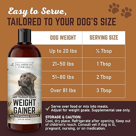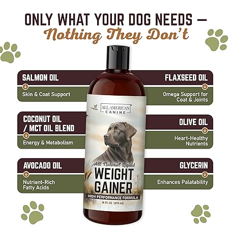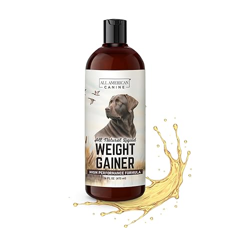 Thông tin sản phẩm All American Canine Dog Weight Gainer Liquid – High Calorie Dog Food Supplement for Rapid Weight Gain, Mass, and Recovery – Appetite Stimulant – 60 Servings