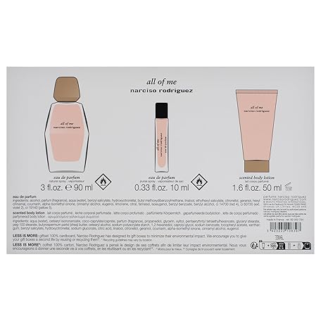Thông tin sản phẩm All Of Me by Narciso Rodriguez for Women - 3 Pc Gift Set 3.3oz EDP Spray, 1.6oz Body Lotion, 0.33oz EDP Spray