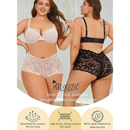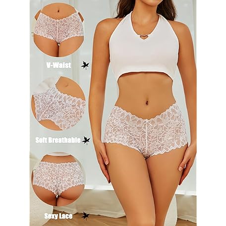 • ALL OF SHE Sexy Underwear Panties for Women Cheeky V Waist Lace Boyshorts Plus Size Underwear Women 5 Pack