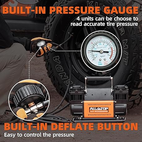 Thông tin sản phẩm ALL-TOP Air Compressor Kit, Dual Cylinder 12V Portable Inflator 12.35 ft³/Min, Offroad Air Compressor Pump for Truck Tires, Heavy Duty Max 150 PSI for 4x4 Vehicle & RV