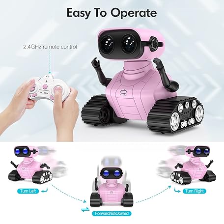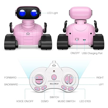 Thông tin sản phẩm ALLCELE Girls Robot Toy, Rechargeable RC Robot for Kids, Remote Control Toy with Music and LED Eyes, Gift for Children Age 3 Years and Up - Pink