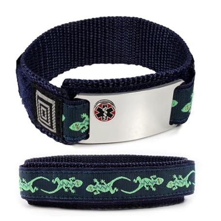 Allergic to Aspirin Sport Medical ID Alert Bracelet with Lizard Adjustable Wrist Band (Hooks and Loops).