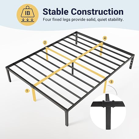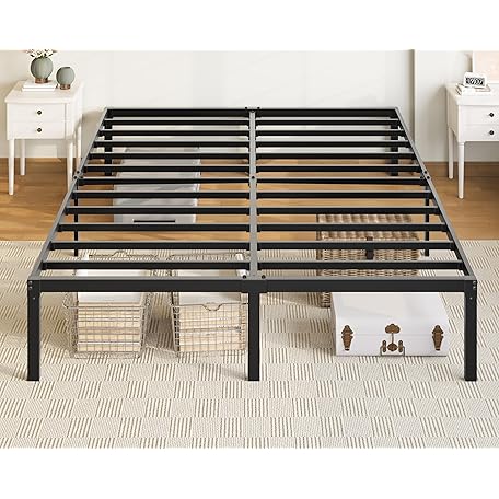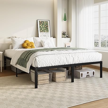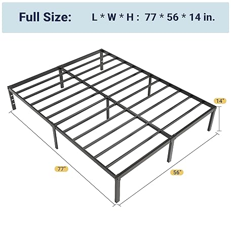 • Allewie Full Size Bed Frame, 14 inch Metal Platform Beds with Storage Space, No Box Spring Needed and Easy Assembly, Black
