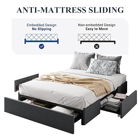 Thông tin sản phẩm Allewie Full Size Platform Bed Frame with 3 Storage Drawers, Fabric Upholstered, Wooden Slats Support, No Box Spring Needed, Noise Free, Easy Assembly, Dark Grey