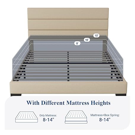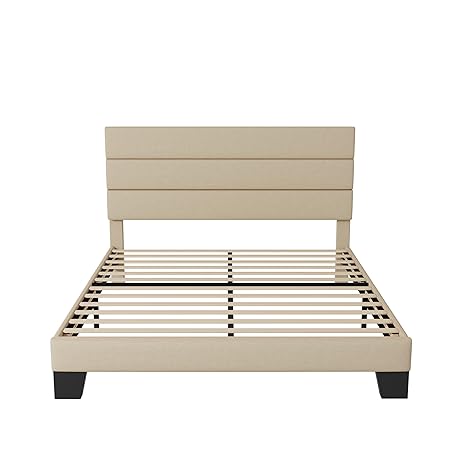 Thông tin sản phẩm Allewie Queen Size Platform Bed Frame with Fabric Upholstered Headboard and Wooden Slats Support, Fully Upholstered Mattress Foundation/No Box Spring Needed/Easy Assembly, Beige