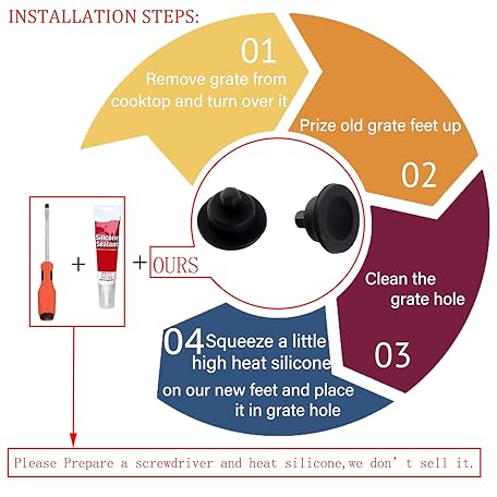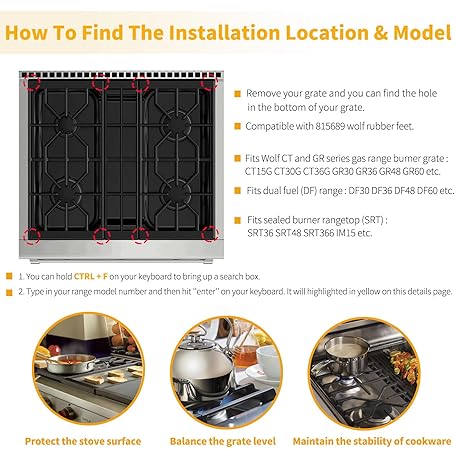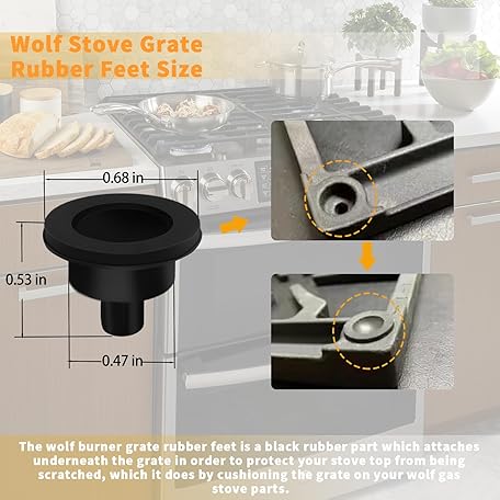 Thông tin sản phẩm Allstare 815689 Grate Rubber Feet for Wolf Range Stove CT Gas Cooktop, GR Series Gas Range Burner Grate Pad Range Parts Wolf Gas Cooktop Burner Grate Feet Bumpers Also Fit Other Brand Stove 4 Pack