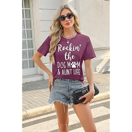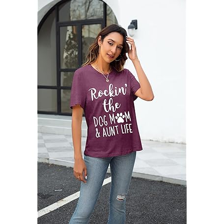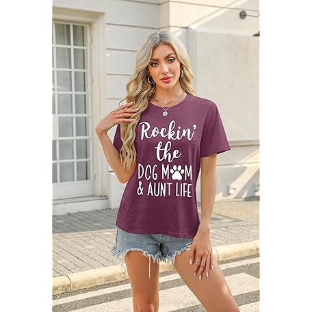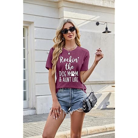 • ALLTB Dog Mom Shirt Women Funny Dog Paw Graphic Shirt Rockin' The Dogs Mom Aunt Life Tshirt Dogs Lover Short Sleeve Tops