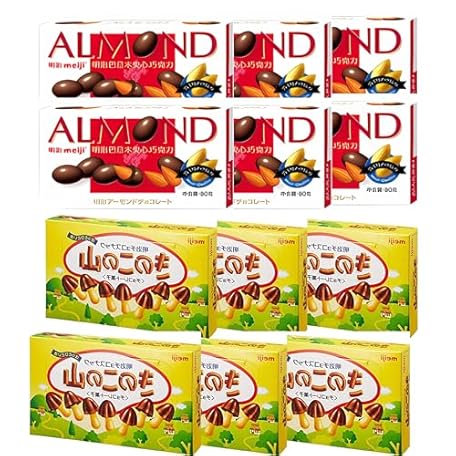 Almond Chocolate 3.7oz & Kinoko No Yama 3.1oz – Japanese Chocolate Snack Bundle, 12-Pack (6 Each)