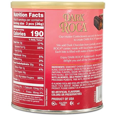 • Almond Roca Pack of 1-10oz Individually Wrapped Dark Chocolate Candy - Buttercrunch Toffee with Almonds Covered in Chocolate - Gluten Free, Kosher, Chocolate