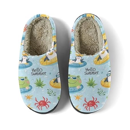 Aloewxxr Hello Summer Pool Party Women's Fuzzy Slippers Bedroom Slippers Warm House Shoes with Anti-Skid Rubber Hard Sole Outdoor Comfort Man