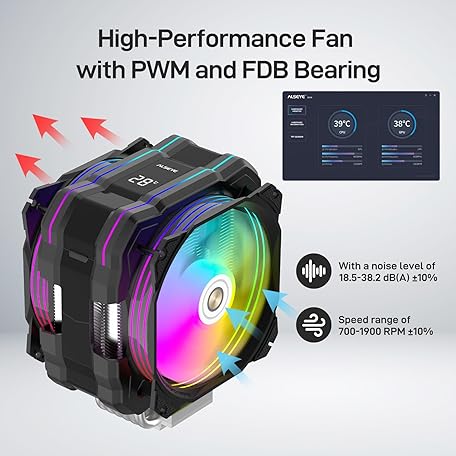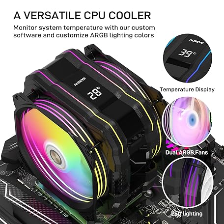 Sản phẩm ALSEYE M120D Plus CPU Cooler with Temperature Display, Dual ARGB & PWM Fans, 6 Copper Heat Pipes - Compatible with Intel LGA1700/1200/115X/2011/2066/1366 and AMD AM4/AM5 - Easy Installation - Black đang được bán với giá ưu đãi là $74.1091 tại nước Mỹ.
