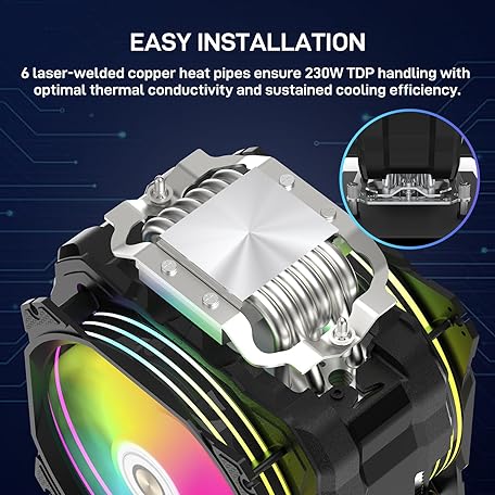 Thông tin sản phẩm ALSEYE M120D Plus CPU Cooler with Temperature Display, Dual ARGB & PWM Fans, 6 Copper Heat Pipes - Compatible with Intel LGA1700/1200/115X/2011/2066/1366 and AMD AM4/AM5 - Easy Installation - Black