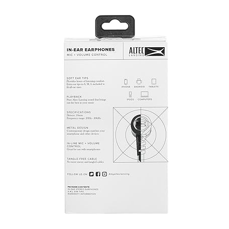 Thông tin sản phẩm Altec Lansing インイヤーステレオメタルイヤホン ブラック (MZX147-BLK)