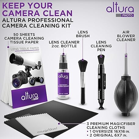 Thông tin sản phẩm Altura Photo Camera Cleaning Kit - Camera Accessories Electronics Bundle - Lens Cleaner Spray, Brush, Pen, Cloths, Wipes, Air Blower - DSLR Photography Accessories Lens Cleaning Kit Photographer Gifts