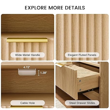 Amada TV Stand for 50-65" TV, Fluted Modern TV Stand Entertainment Center with Drawers and Open Shelf, Waveform Panel, Sleek Curved Profile Media TV Console Table for Living Room, Bedroom, Nature Oak