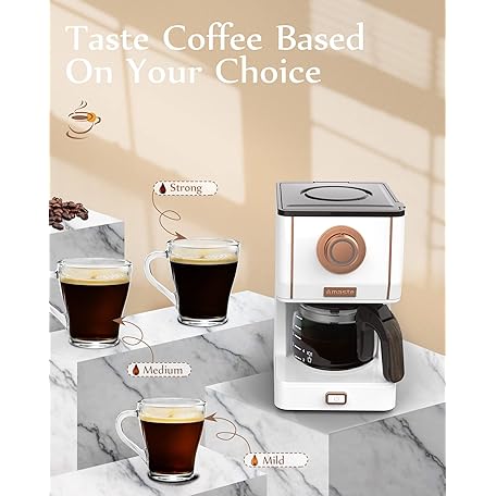 Thông tin sản phẩm Amaste Retro Style Coffee Machine with 25 Oz Glass Coffee Pot, Reusable Coffee Filter & Three Brewing Modes, 30minute-warm-keeping, Elegant White with Rose Gold