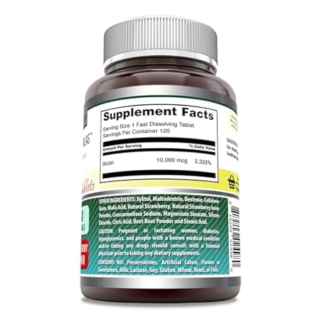 Sản phẩm Amazing Formulas Biotin Fast Dissolve 10000 Mcg Tablets Supplement | Strawberry Flavor | Vitamin B7 | Non-GMO | Gluten Free | Made in USA (120 Count) đang được bán với giá ưu đãi là $13.0691 tại nước Mỹ.