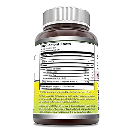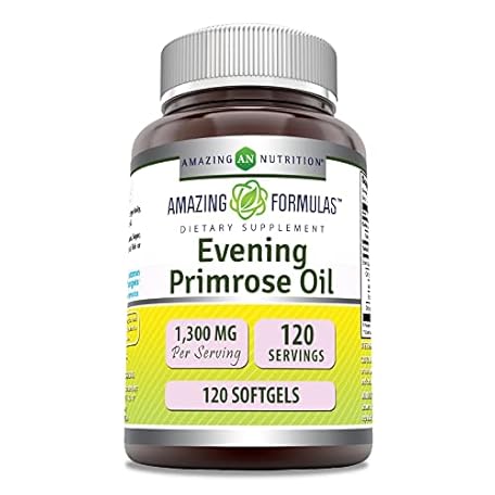 Thông tin sản phẩm Amazing Formulas Evening Primrose Oil 1300mg, 10% GLA, Softgels Supplement | Hexane Free Cold Pressed Oil | Non-GMO | Gluten Free (120 Count)