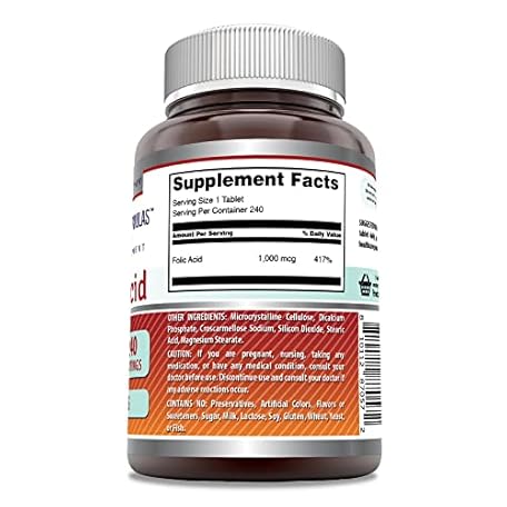 Sản phẩm Amazing Formulas Folic Acid 1000 Mcg (1 Mg) | 240 Tablets Supplement | Vitamin B9 | Non-GMO | Gluten Free | Made in USA đang được bán với giá ưu đãi là $9.1015 tại nước Mỹ.