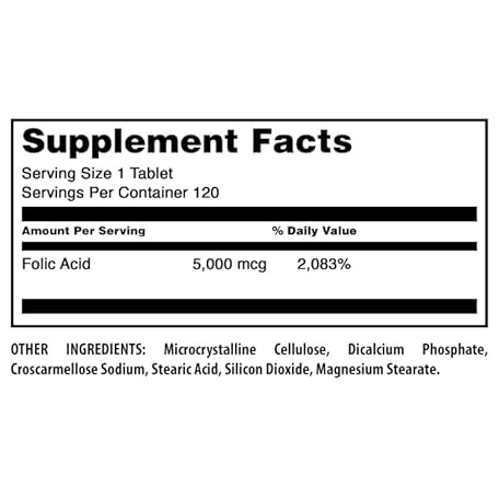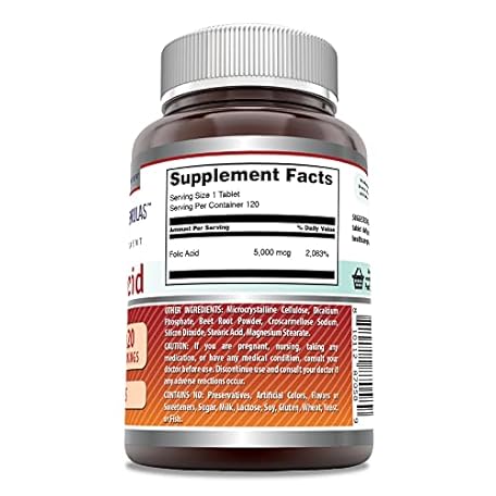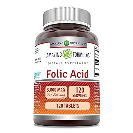 Sản phẩm Amazing Formulas Folic Acid 5000 Mcg per Serving | Tablets Supplement | Non-GMO | Gluten-Free | Made in USA (1 Pack | 120 Count) đang được bán với giá ưu đãi là $10.8455 tại nước Mỹ.