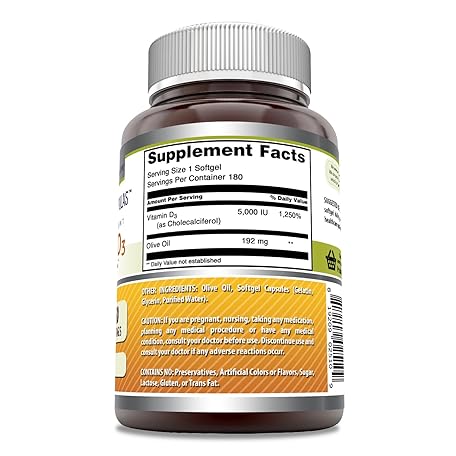Sản phẩm Amazing Formulas Vitamin D3 with Olive Oil 5000 IU Softgels Supplement | Non-GMO | Gluten Free | Made in USA (180 Count) đang được bán với giá ưu đãi là $10.8891 tại nước Mỹ.