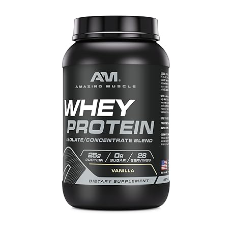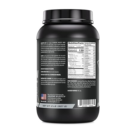 Sản phẩm Amazing Muscle 100% Whey Protein Powder *Advanced Formula with Whey Protein Isolate as a Primary Ingredient Along with Ultra Filtered Whey Protein Concentrate (Vanilla, 2 lb) đang được bán với giá ưu đãi là $34.8691 tại nước Mỹ.