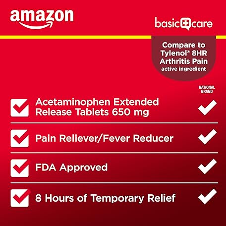 Thông tin sản phẩm Amazon Basic Care Acetaminophen Extended-Release Tablets, 650 mg, Arthritis Pain, 400 Count