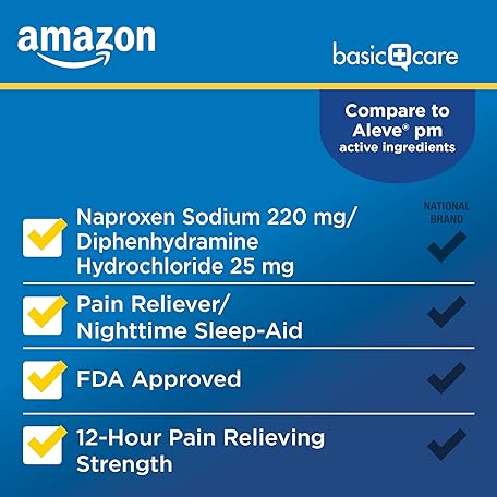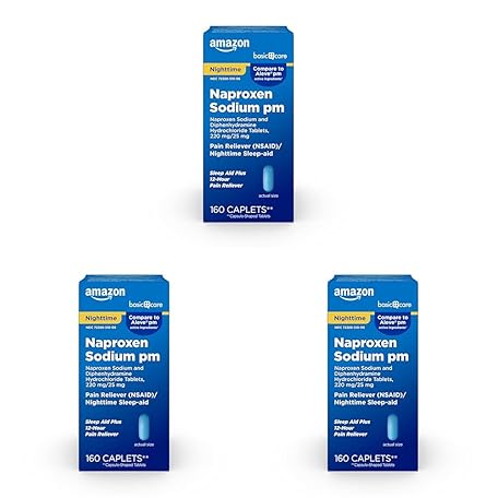 Thông tin sản phẩm Amazon Basic Care All Night Pain Relief PM, Naproxen Sodium, 220 mg/Diphenhydramine Hydrochloride, 25 mg Tablets, Pain Reliever/Nighttime Sleep-Aid, 160 Count (Pack of 3)