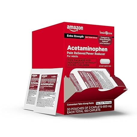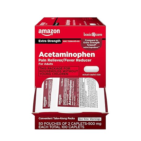 Sản phẩm Amazon Basic Care - Extra Strength Acetaminophen Caplet 500 mg, 100 Count ( 50 pouches of 2 caplets ) đang được bán với giá ưu đãi là $9.8972 tại nước Mỹ.