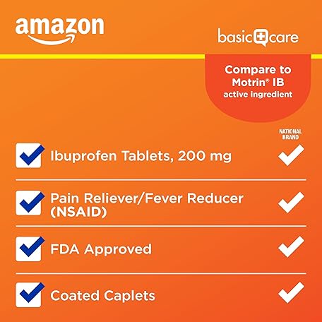 Thông tin sản phẩm Amazon Basic Care Ibuprofen Tablets, 200 mg, Pain Reliever and Fever Reducer, For Arthritis, Toothache, Backache and More, 100 Count