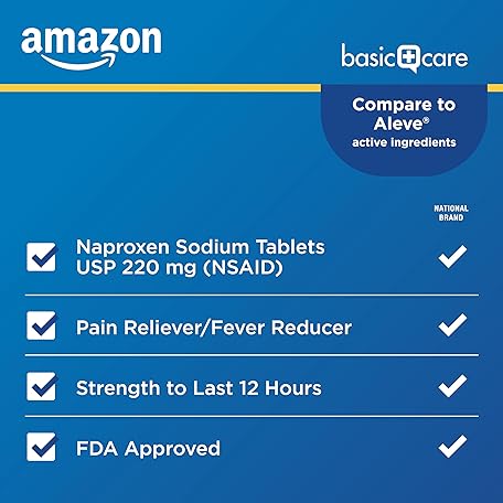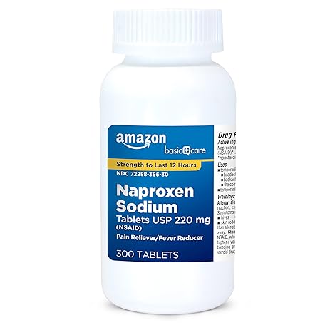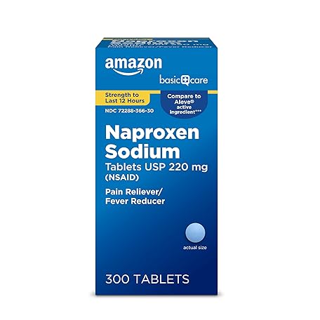 Thông tin sản phẩm Amazon Basic Care Naproxen Sodium Tablets 220 mg, Pain Reliever/Fever Reducer (NSAID), Muscular Aches, Backache, Headache, Toothache, Minor Arthritis Pain Relief & More, 300 Count (Packaging may vary)