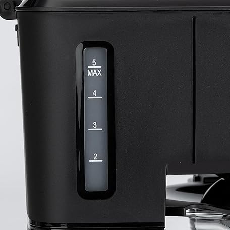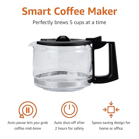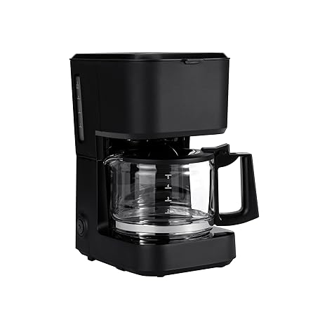 Amazon Basics 5 Cup Drip Coffee Maker, Coffee Machine with Glass Coffee Pot (0.8 Qt), Auto Shut-off, Auto Pause, Removable Filter Basket, Matte Black