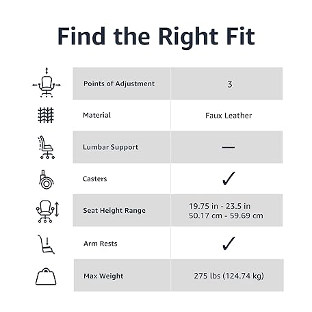 Thông tin sản phẩm Amazon Basics Classic Puresoft PU Padded Mid-Back Height Adjustable Office Computer Desk Chair with Armrest, 26"D x 23.75"W x 42"H, Cream