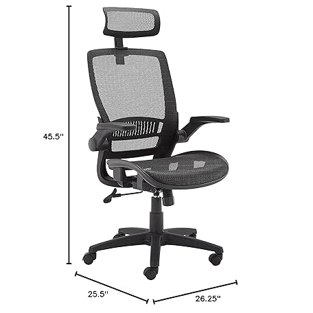 Thông tin sản phẩm Amazon Basics Ergonomic High-Back Desk Chair, Comfortable Flip-Up Armrests, Contoured Mesh Seat, Swivel, Black, 25.5"D x 26.25"W x 49.25"H