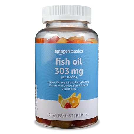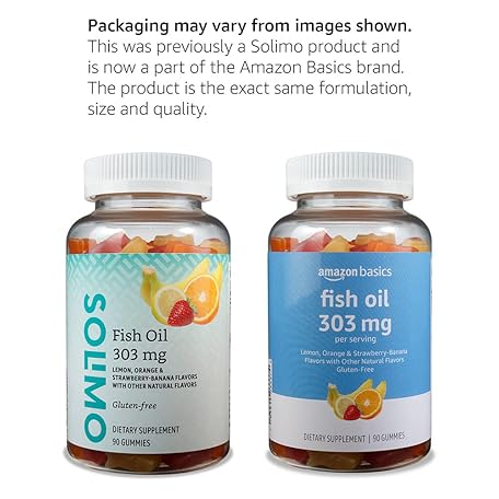 Thông tin sản phẩm Amazon Basics Fish Oil 303 mg, Lemon, Orange & Strawberry-Banana flavors, 90 Gummies (2 per Serving), EPA and DHA Omega-3 fatty acids (Previously Solimo)