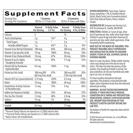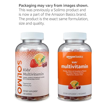 Thông tin sản phẩm Amazon Basics Kids' Multivitamin, 190 Gummies, Orange, Cherry & Strawberry (Previously Solimo)
