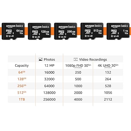 Thông tin sản phẩm Amazon Basics Micro SDXC Memory Card with Full Size Adapter, A2, U3, Read Speed up to 100 MB/s, 128 GB, Black