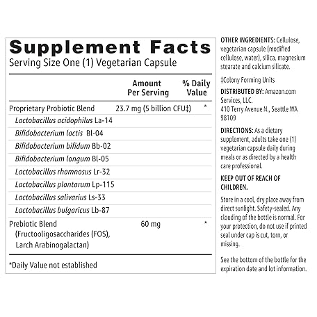 Thông tin sản phẩm Amazon Basics Probiotic, 5 Billion CFU, No Artificial Colors & Flavors, Gluten-Free, 60 Vegetarian Capsules (Previously Solimo)