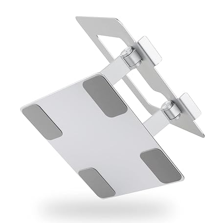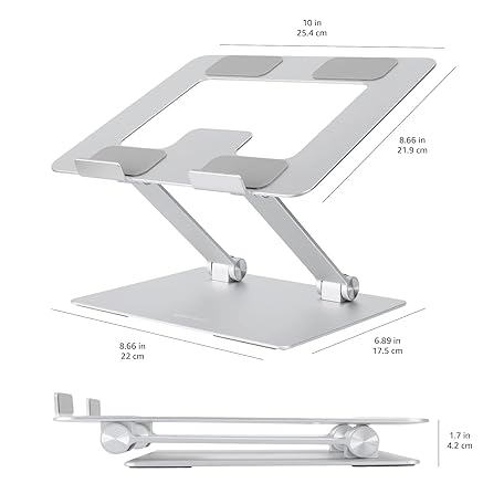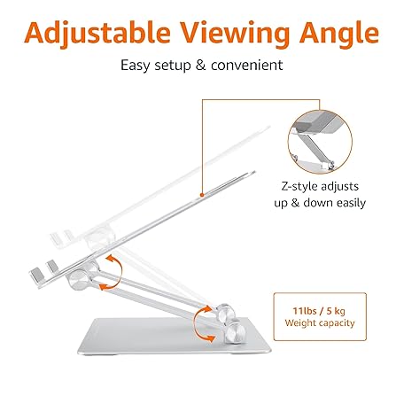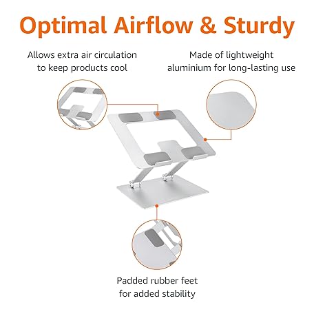 Thông tin sản phẩm Amazon Basics Sturdy and Portable Ergonomic Laptop Stand for Desk, Adjustable Riser, Fits all Laptops and Notebooks up to 17.3 Inch, Silver, 10 x 8.7 x 6 in