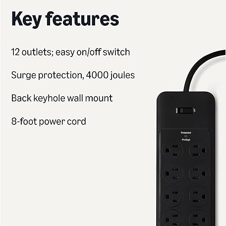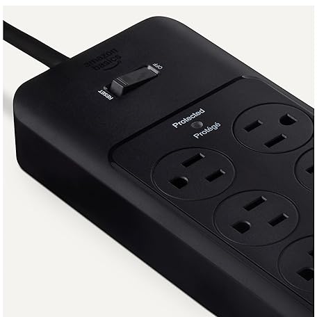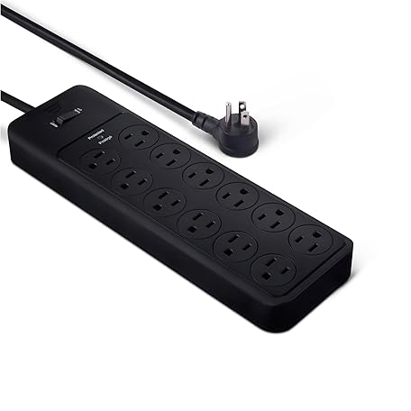 Amazon Basics Surge Protector Power Strip, 12-Outlet, 4000 Joules, 8ft Extension Cord, Rectangle, for Home, Office, Gaming Room, Black