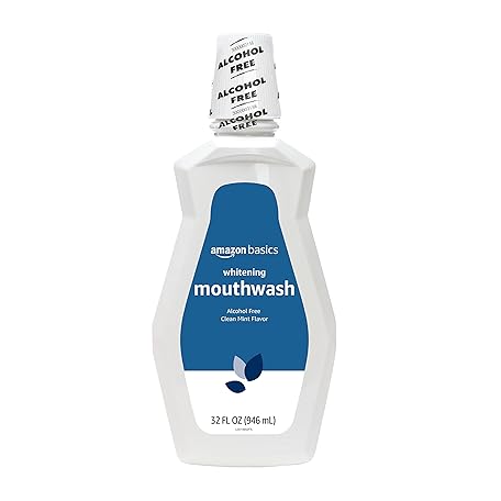 Thông tin sản phẩm Amazon Basics Teeth Whitening Mouthwash, Alcohol-Free, Clean Mint, 32 Fluid Ounces, 4-Pack, Previously Solimo