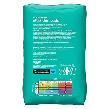 Thông tin sản phẩm Amazon Basics Ultra Thin Pads with Flexi-Wings for Periods, Extra Long Length, Super Absorbency, Unscented, Size 3, 28 Count, 1 Pack (Previously Solimo)