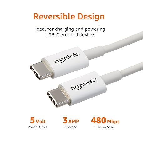 Thông tin sản phẩm Amazon Basics USB-C to USB-C Fast Charger Cable, 480Mbps Speed, USB-IF Certified, for Fast Charging Apple iPhone 16/15, iPad, MacBook, Samsung Galaxy, Tablets, Laptops, 6 Foot, White
