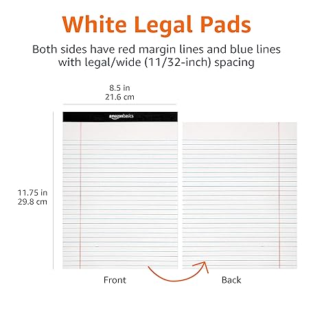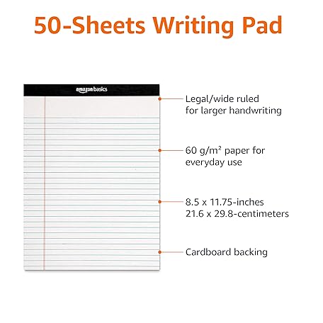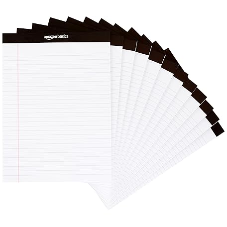 Thông tin sản phẩm Amazon Basics Wide Ruled Lined Writing Note Pads, 8.5 inch x 11.75 inch, White, 12 Count (12 Pack of 50)
