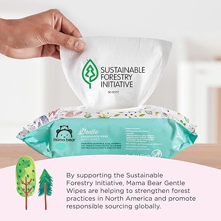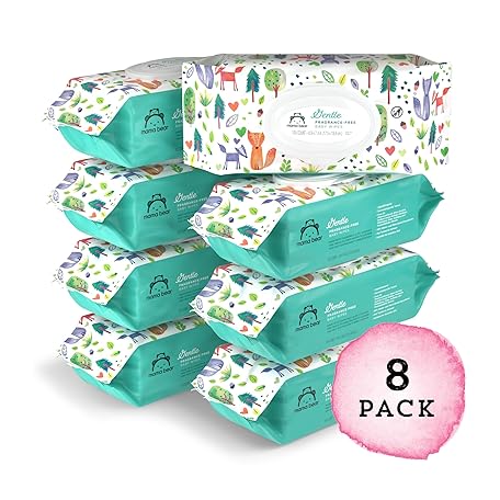 Thông tin sản phẩm Amazon Brand - Mama Bear Gentle Fragrance Free Baby Wipes, Hypoallergenic, Sensitive Skin, Unscented, 800 Count (8 Packs of 100)