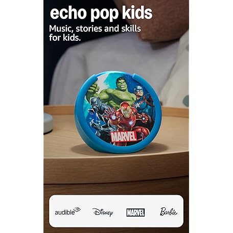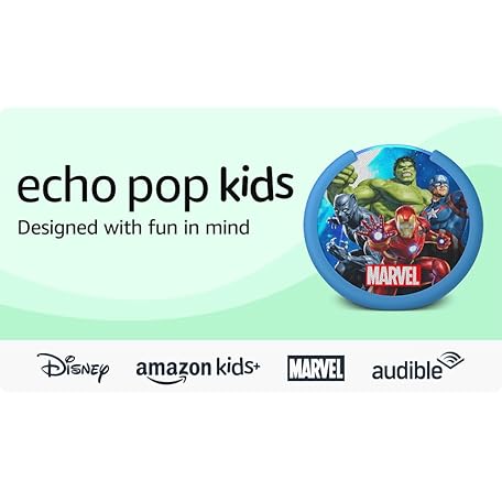Thông tin sản phẩm Amazon Echo Pop Kids (newest model), Designed for kids, with Alexa+ Early Access, parental controls, Includes 6 months of Amazon Kids+, Marvel's Avengers
