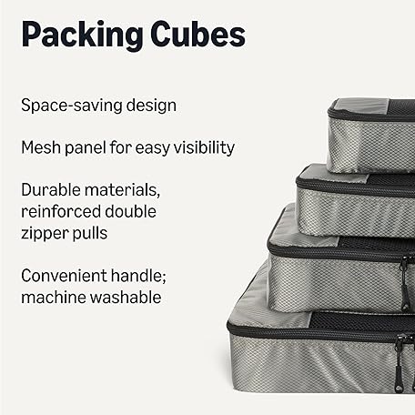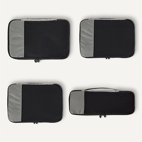 Thông tin sản phẩm Amazon Essentials 4-Piece Packing Cubes Travel Accessories Set, Luggage Organizer with Double Zipper, Mesh Top, 100% Polyester, Small/Medium/Large/Slim, Gray (Previously Amazon Basics)