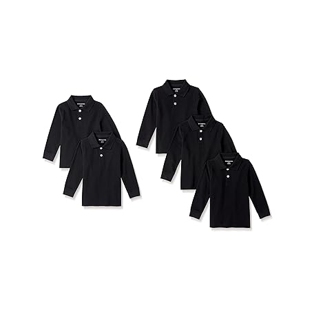 Amazon Essentials Boys and Toddlers' Long-Sleeve Pique Polo Shirts, Multipacks